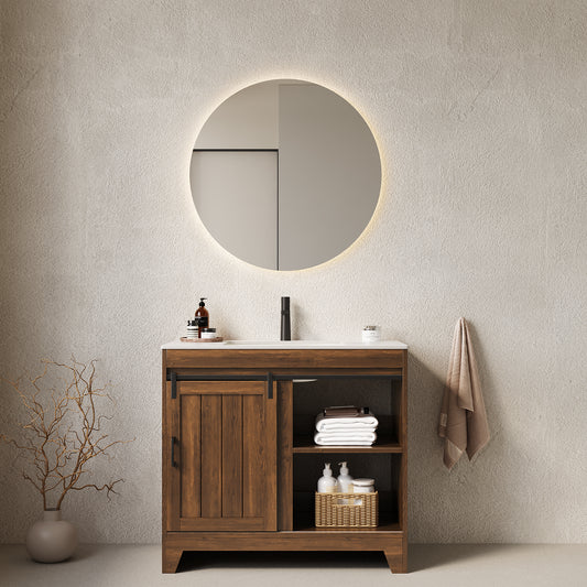 Rika 36" Freestanding Farmhouse Style Bathroom Storage Cabinet With Sliding Barn Door