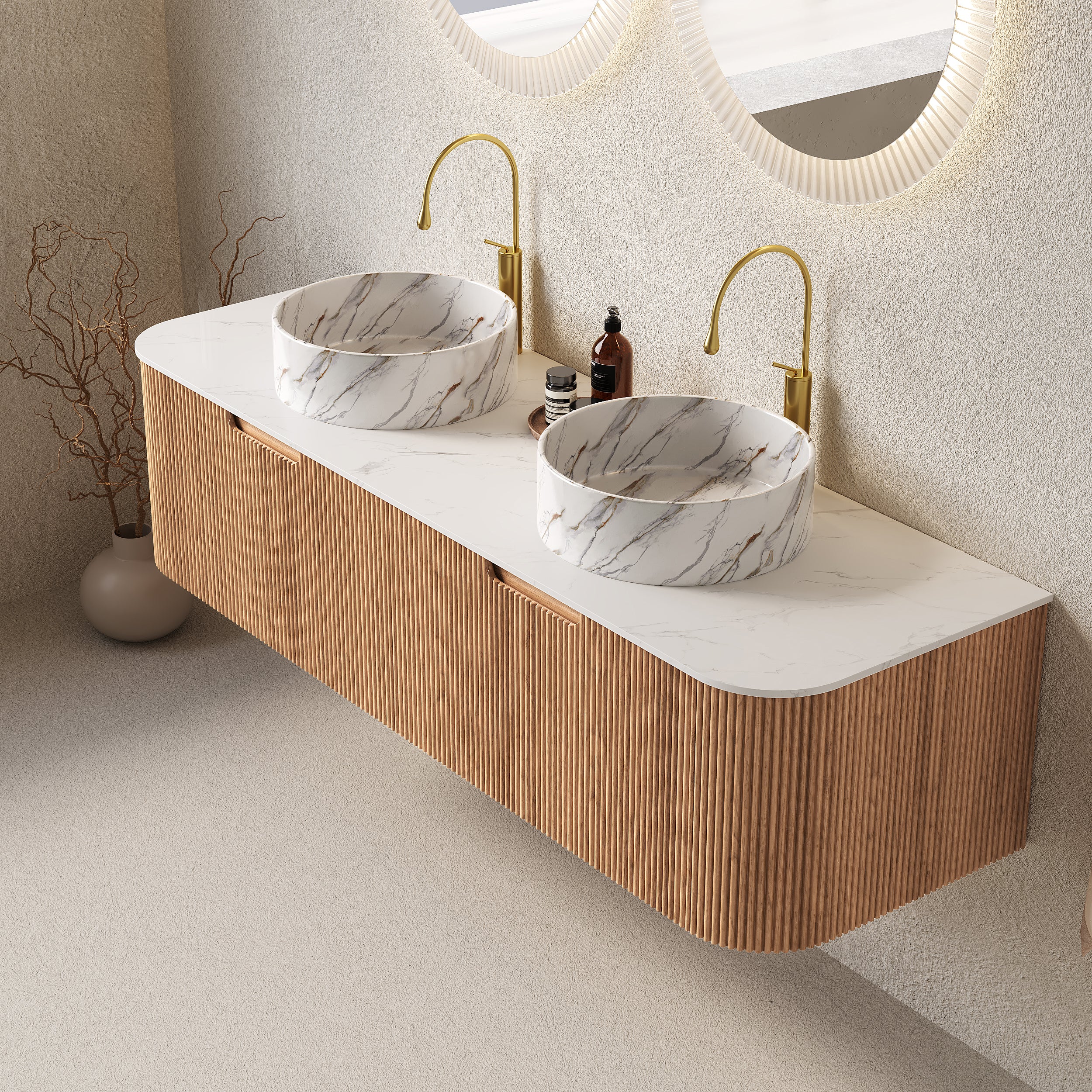 LUCCI 60" Bathroom Vanity with 2 Sinks, Freestanding Plywood Storage Cabinet with 2 Drawers