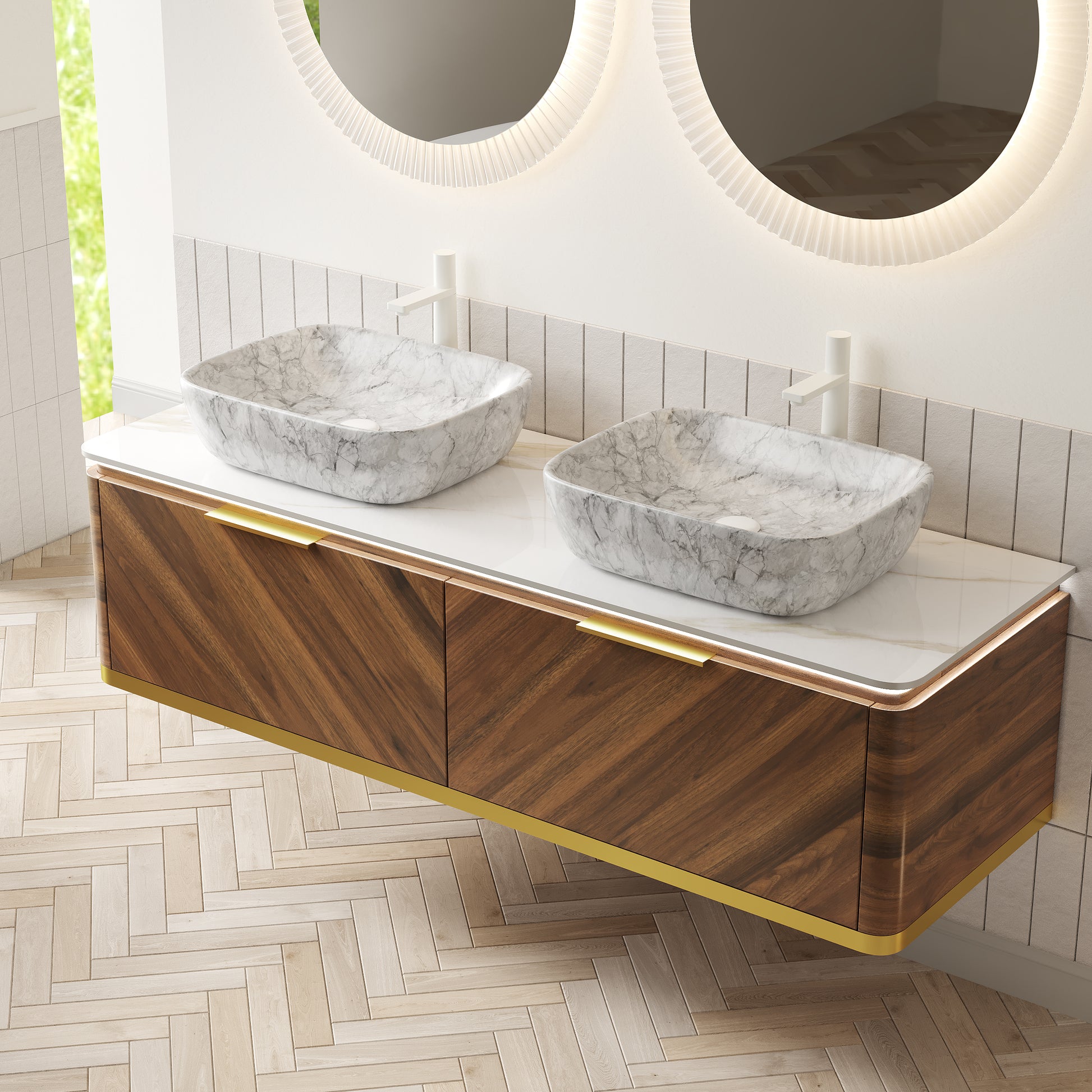 Zur Auswahl stehen hochwertige Aufsatzwaschbecken aus Keramik und Glas mit beeindruckender Ästhetik. Ihr schlichtes Design harmoniert perfekt mit dem Unterschrank, während die hochwertigen Materialien eine mühelose tägliche Pflege gewährleisten.