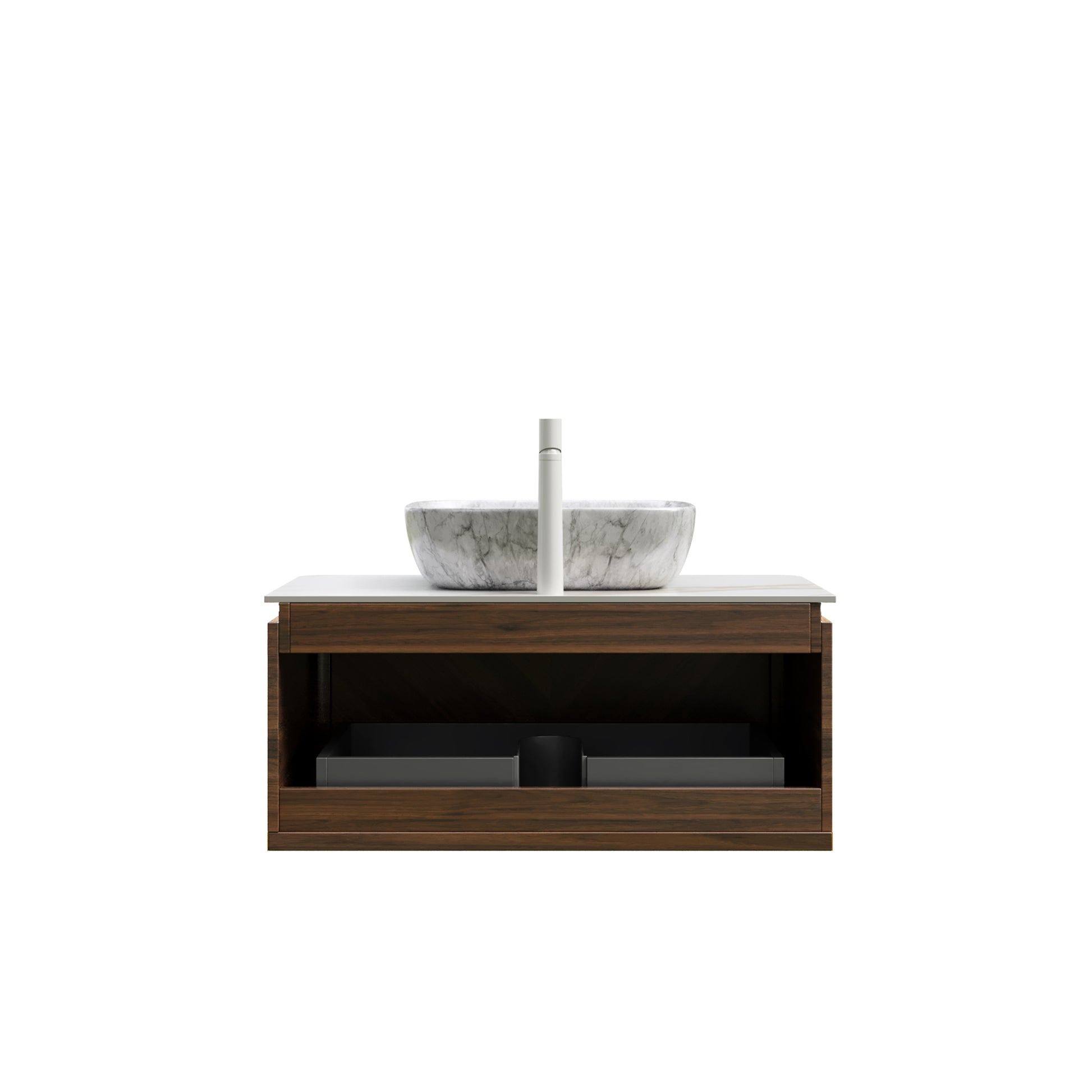 A Premium- Sinterstein - Arbeitsplatte , erzeugt eine natürliche Marmor-ähnliche Optik, die einen Hauch von luxuriöse Atmosphäre zum Badezimmer.