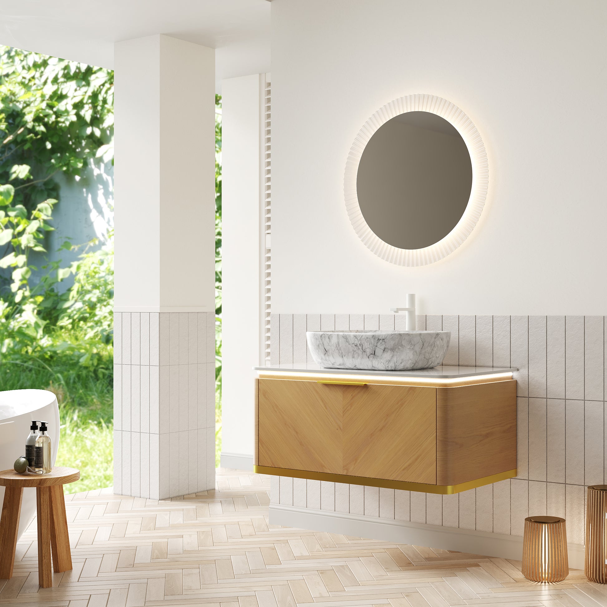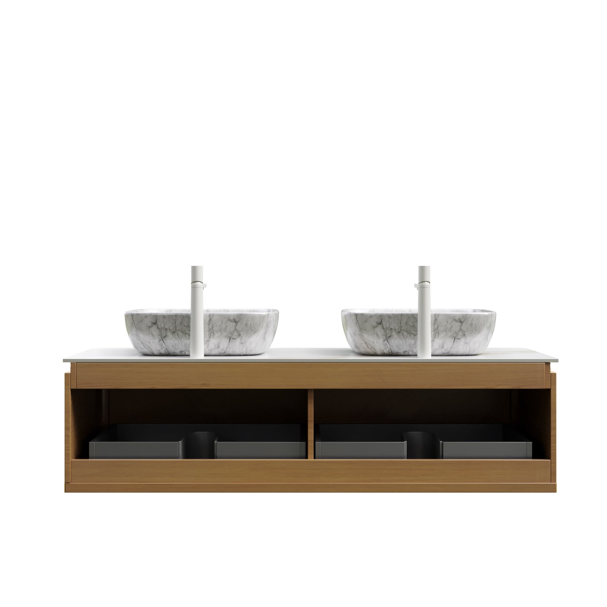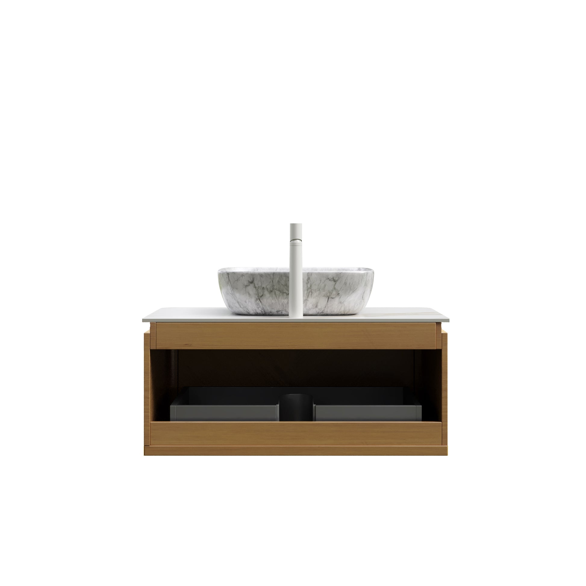 Zur Auswahl stehen hochwertige Aufsatzwaschbecken aus Keramik und Glas mit beeindruckender Ästhetik. Ihr schlichtes Design harmoniert perfekt mit dem Unterschrank, während die hochwertigen Materialien eine mühelose tägliche Pflege gewährleisten.
