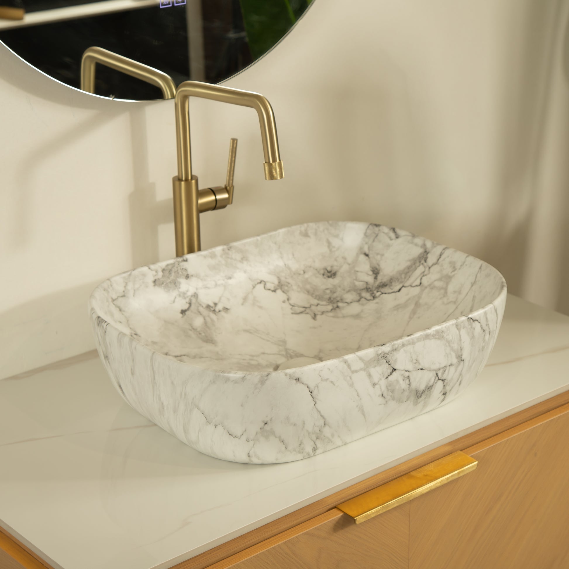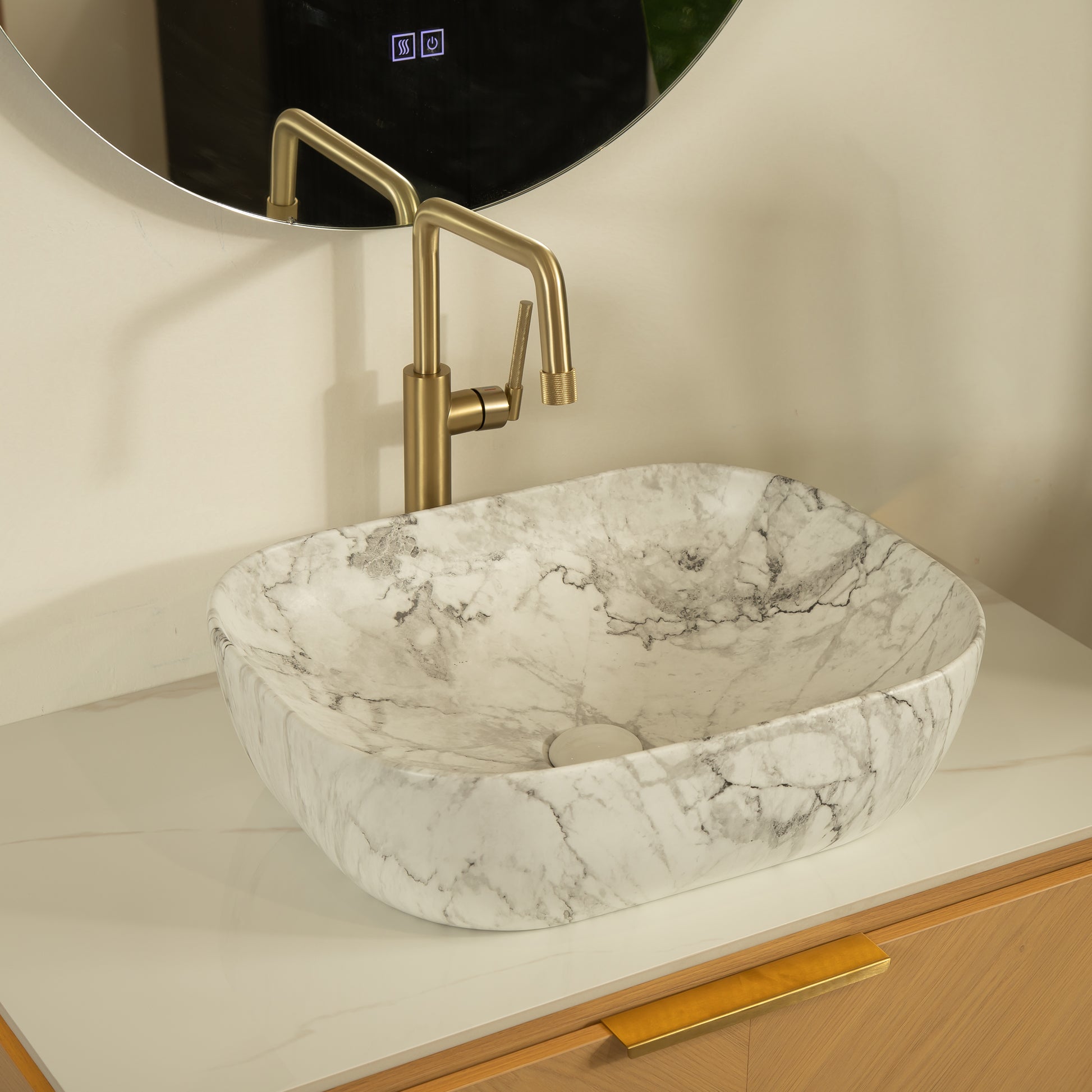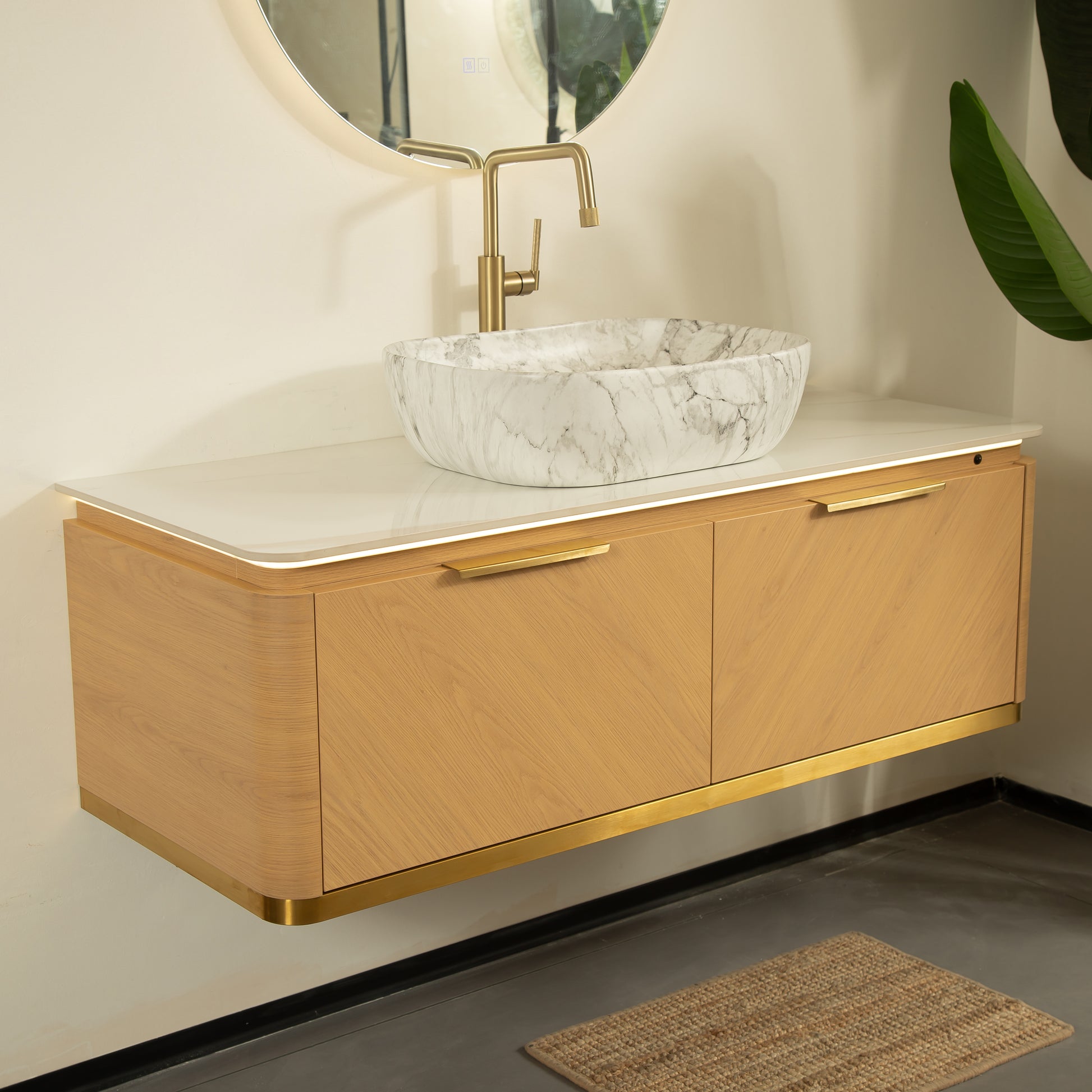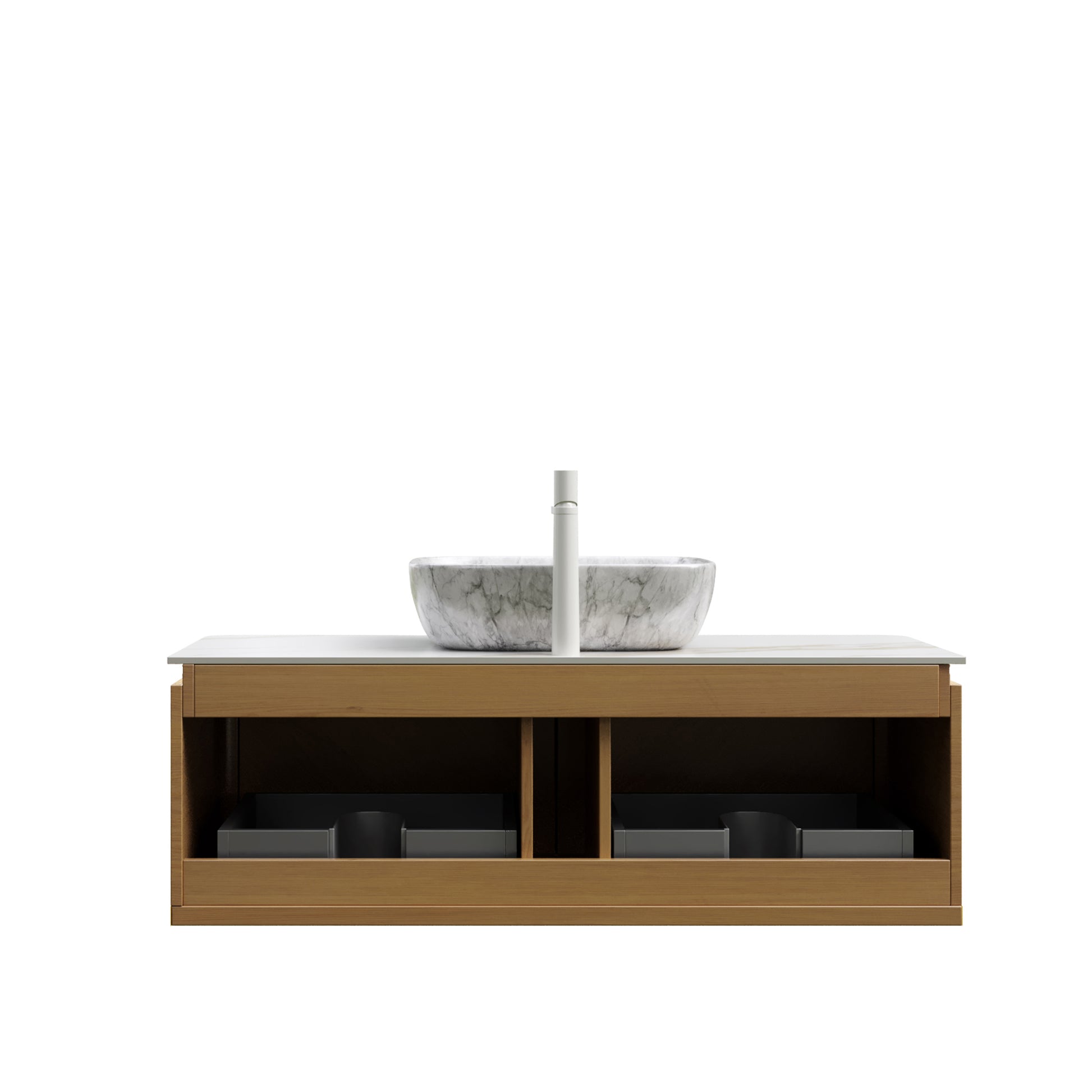 A Premium- Sinterstein- Arbeitsplatte , erzeugt eine natürliche Marmor-ähnliche Optik, die einen Hauch von luxuriöse Atmosphäre zum Badezimmer.
