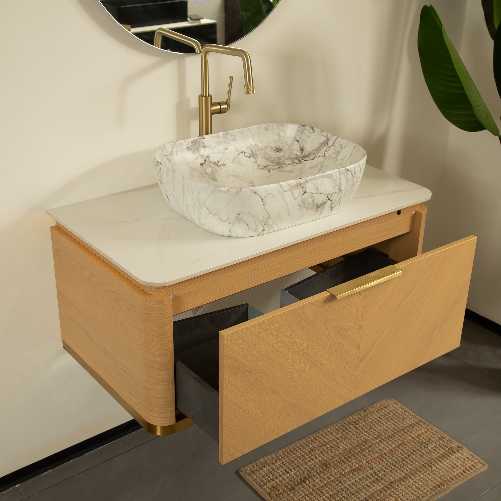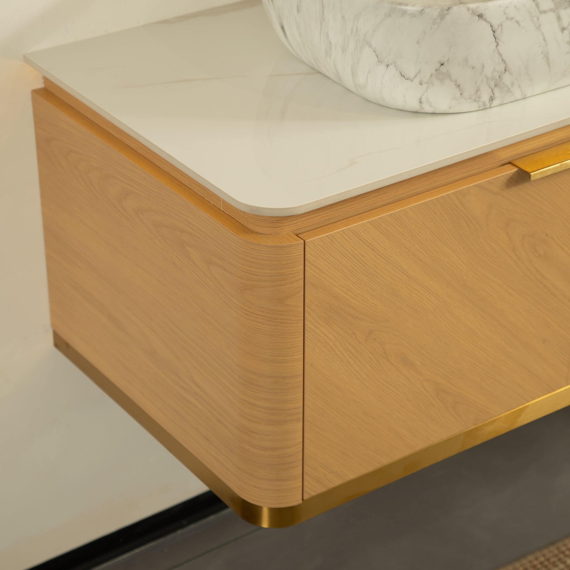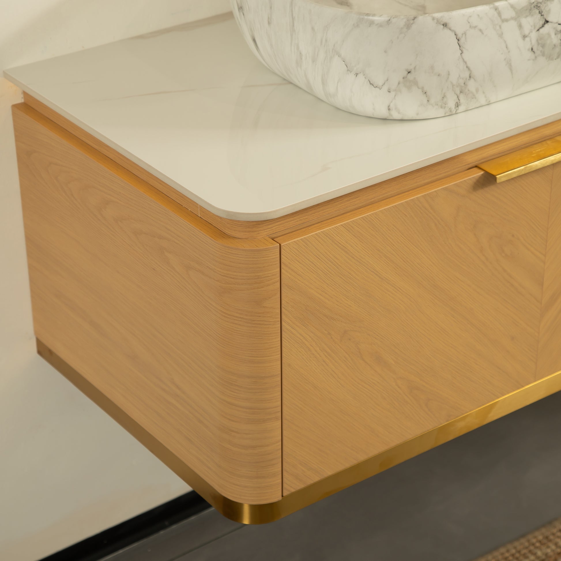 DIPA 60" Badezimmer-Waschtisch und Waschbecken, schwebender Sperrholz-Aufbewahrungsschrank mit 2 Schubladen, Sintersteinplatte