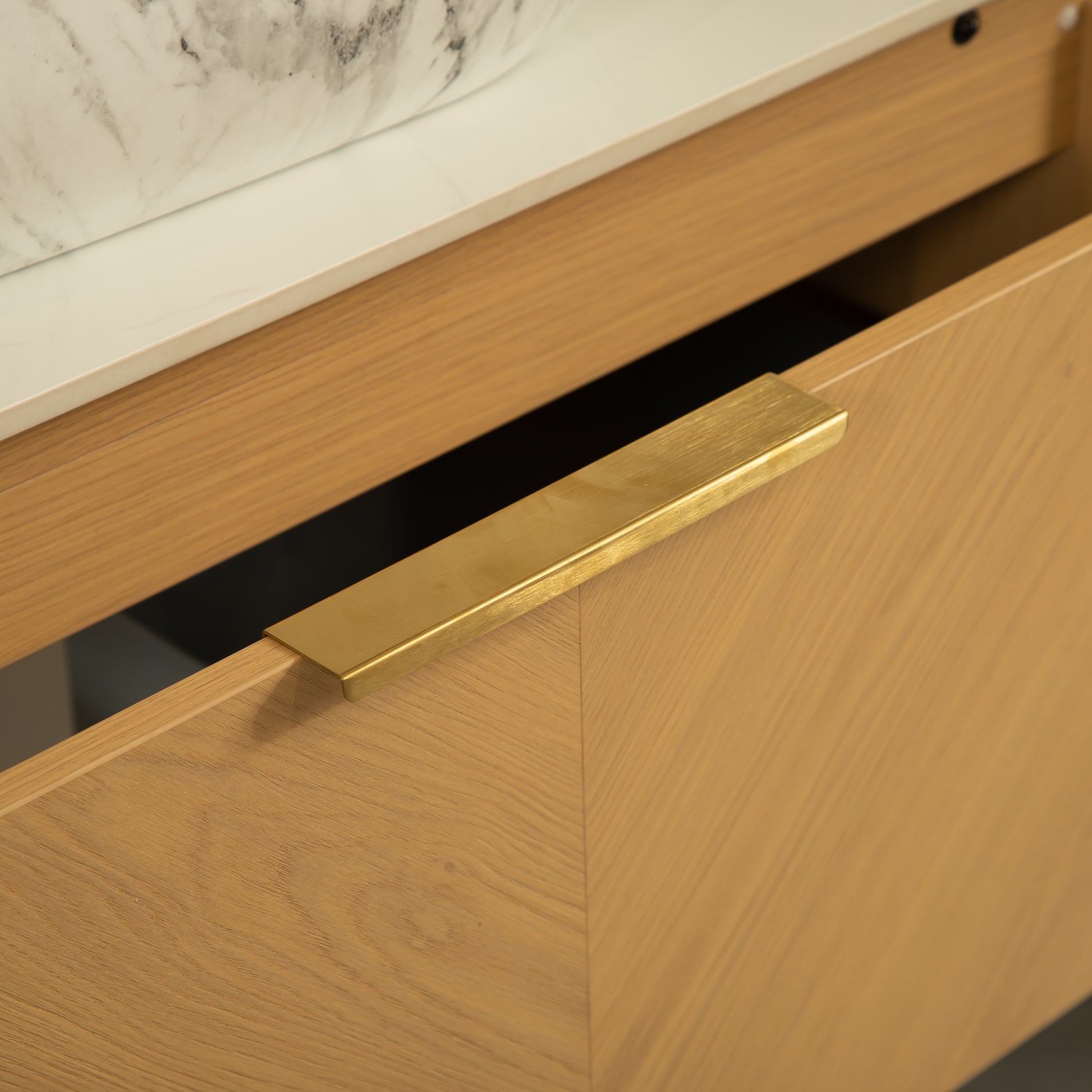 Der Schrankkorpus besteht aus hochwertigem Mehrschichtsperrholz in einem sorgfältig ausgewählten Eichenfarbton, der Eleganz ausstrahlt. Es ist hervorragend wasser- und feuchtigkeitsbeständig und stellt sicher, dass es selbst in einer feuchten Badezimmerumgebung nicht leicht verformt oder schimmelt.