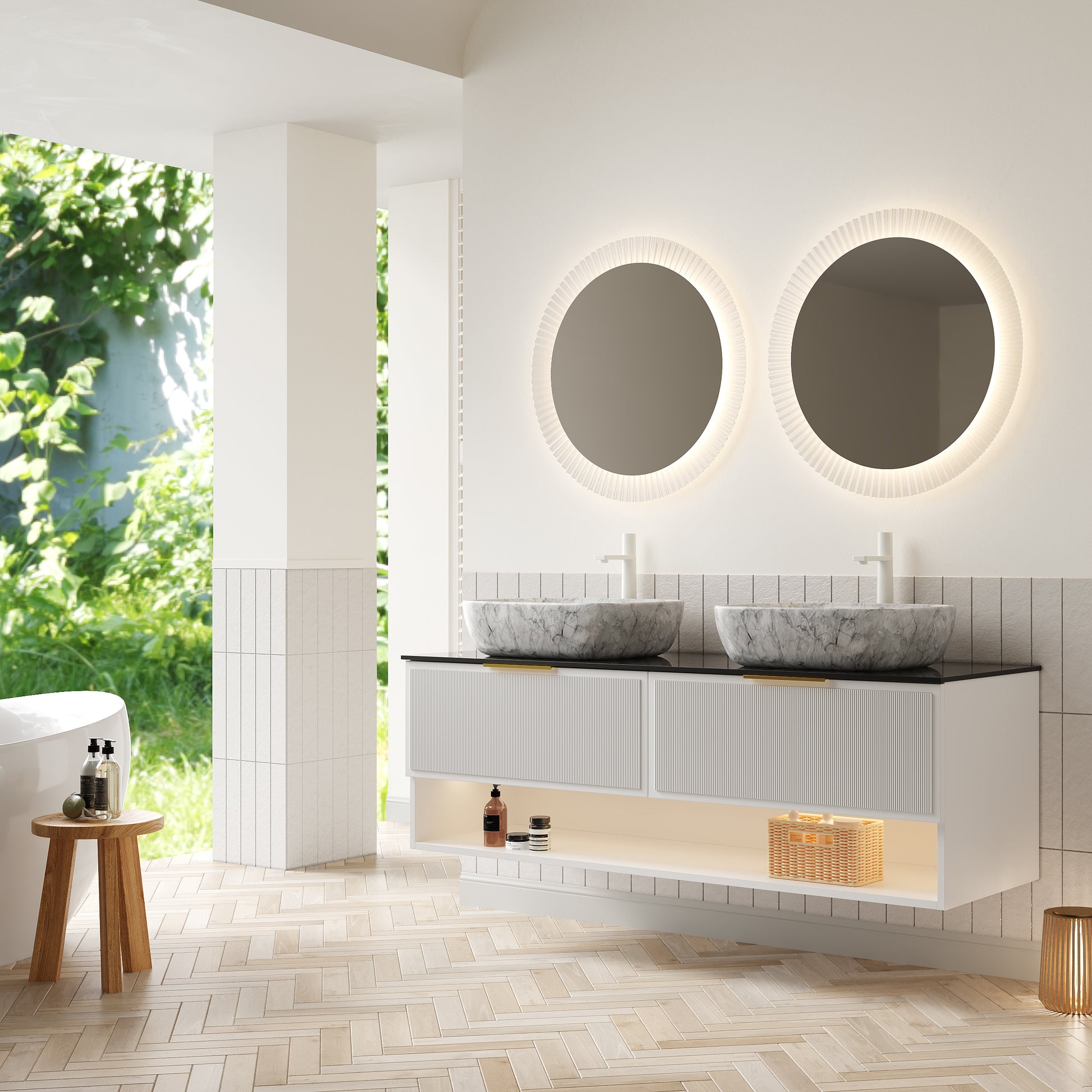 Der Schrankkorpus besteht aus hochwertigem Mehrschichtsperrholz mit hochwertiger weißer Lackierung und strahlt Eleganz aus. Er ist hervorragend wasser- und feuchtigkeitsbeständig, sodass er sich auch in feuchten Badezimmern nicht so leicht verformt oder schimmelt.