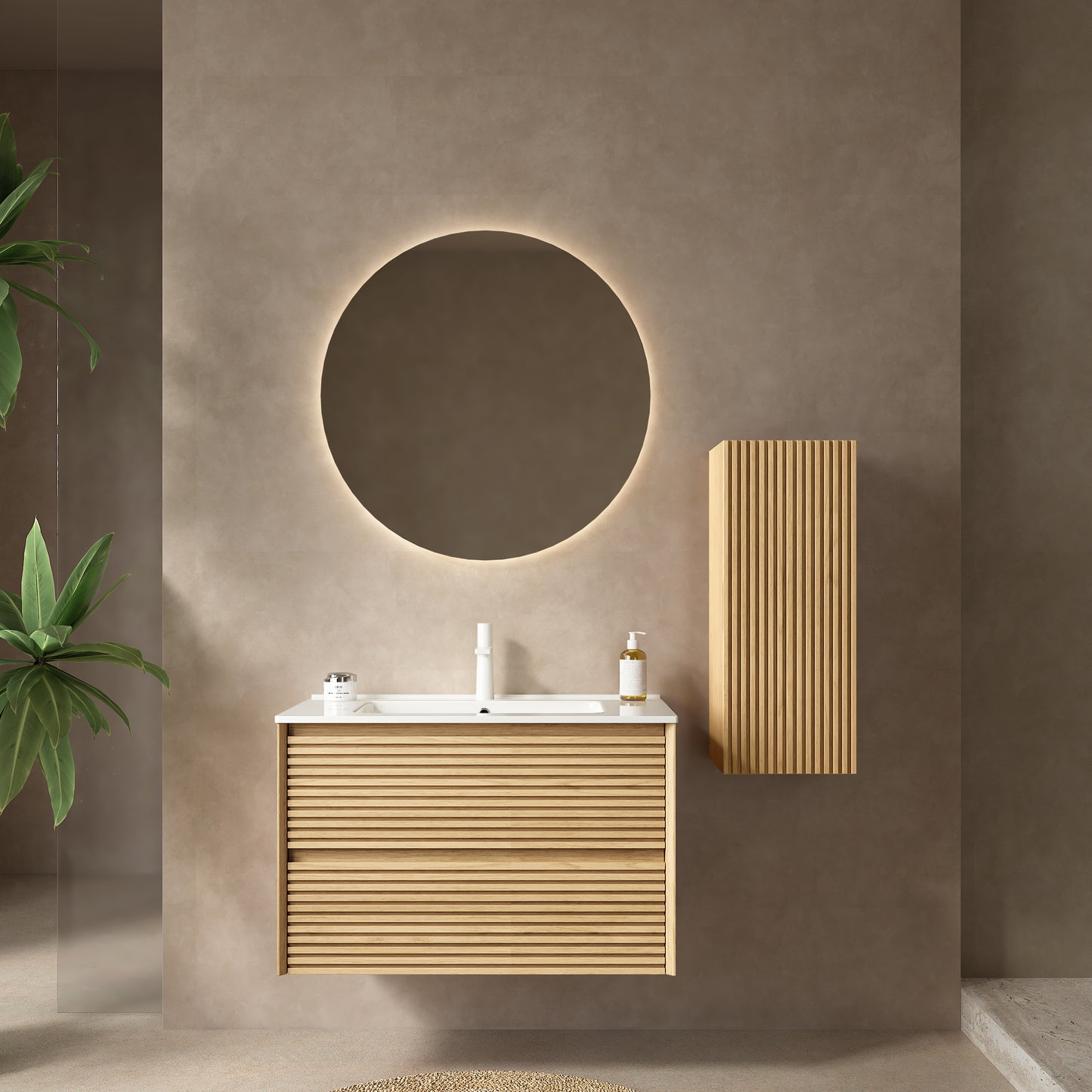 - This wall-mounted side cabinet is made of high-hardness plywood, it is sturdy and wear-resistant. The edges of the wood board are tightly sealed that can be used for a long time. And the panel features a waterproof paint finish ensuring stability and durability, especially in humid environments.
