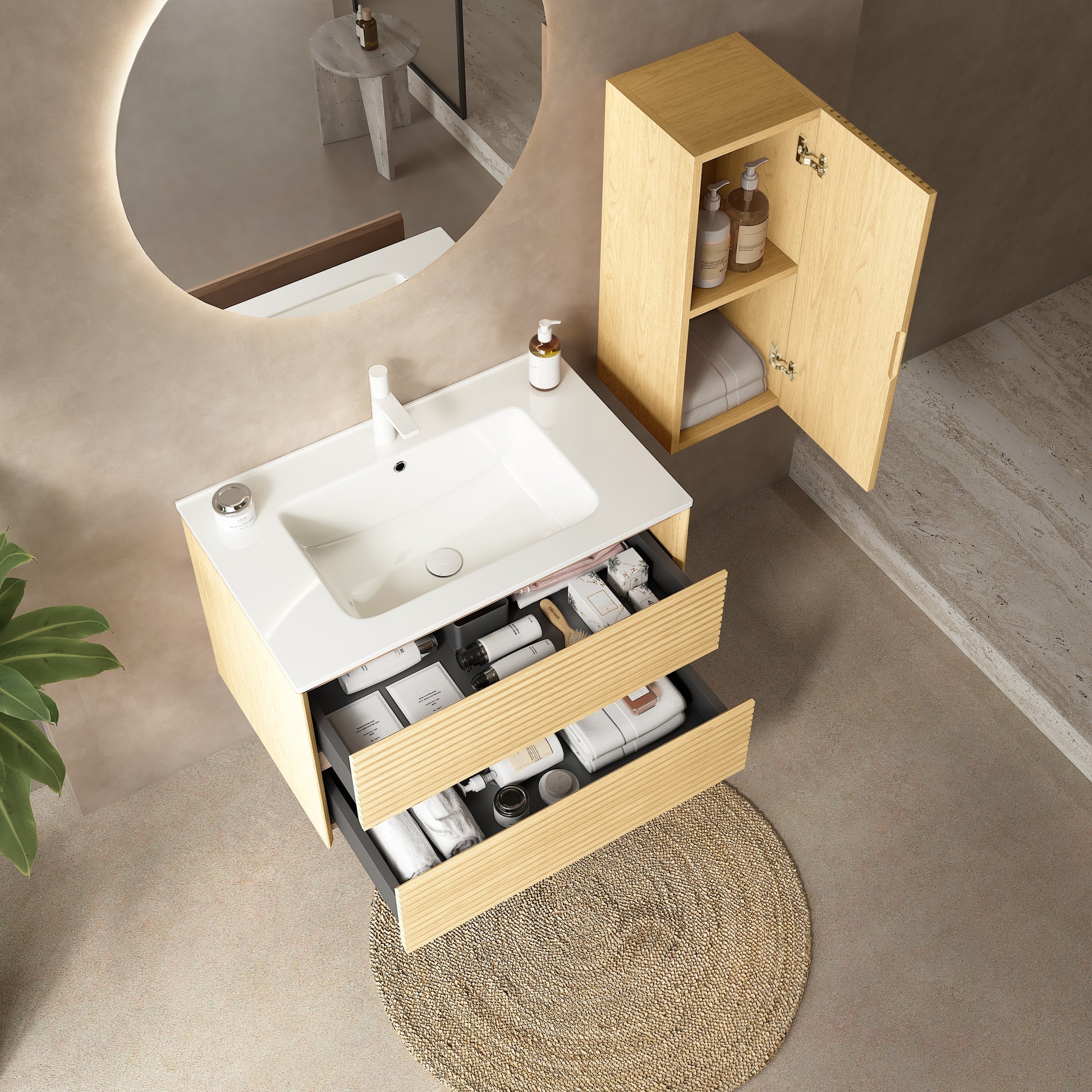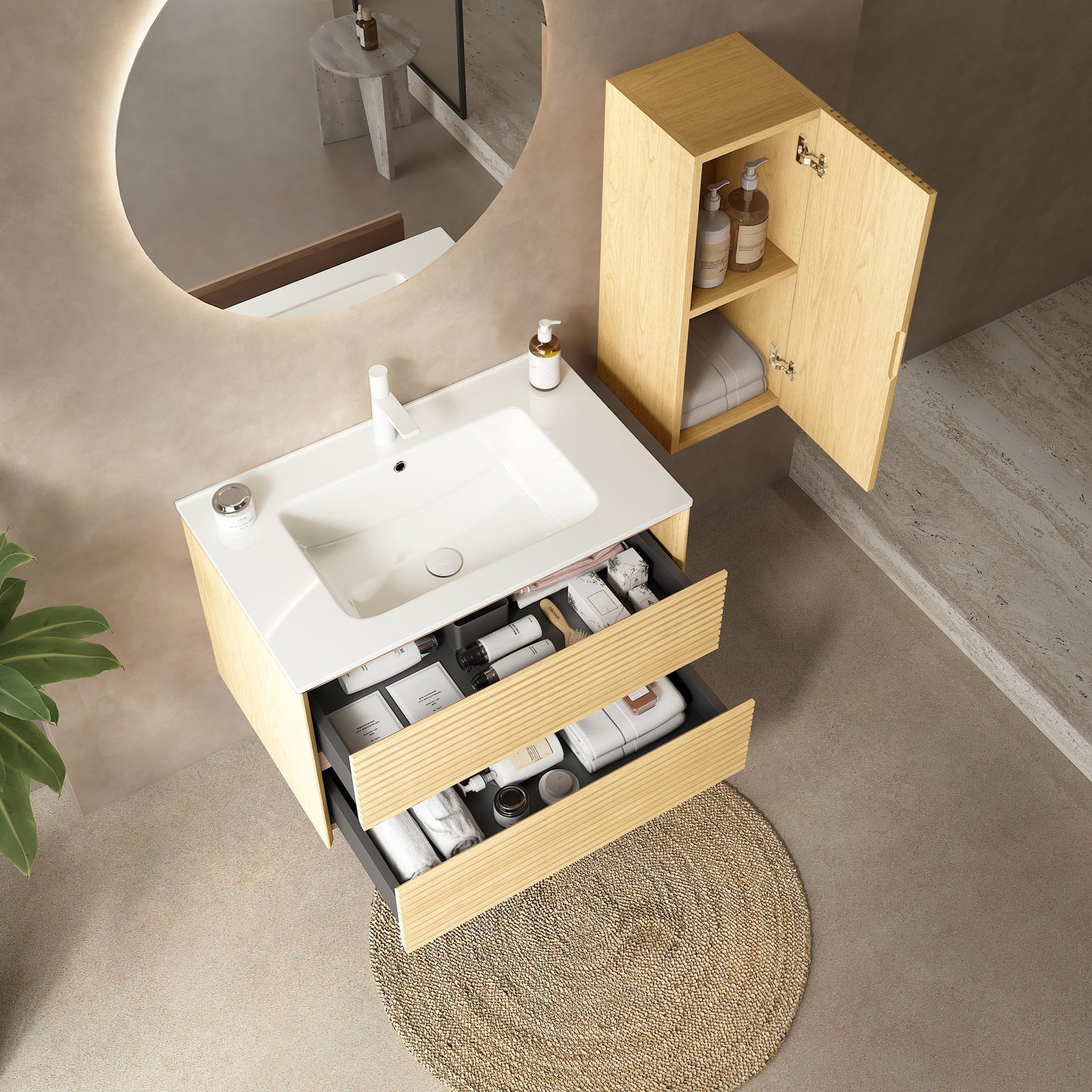 BOI 12" Wall-Mounted Floating Striped Bathroom Vanity Side Cabinet with a Door and a Shelf