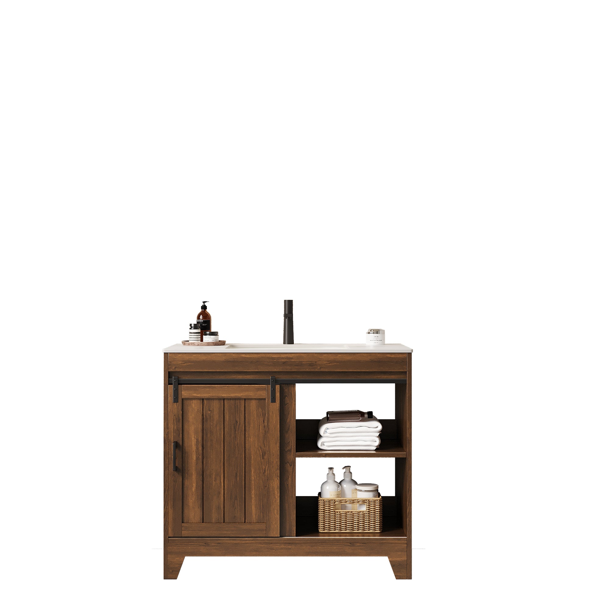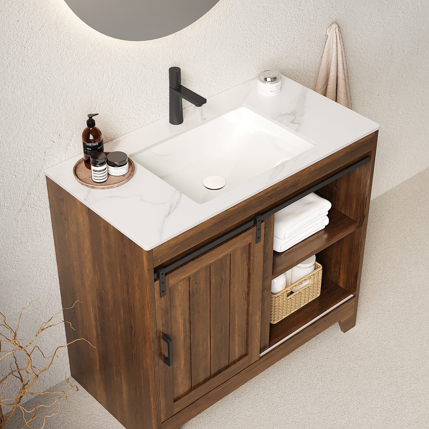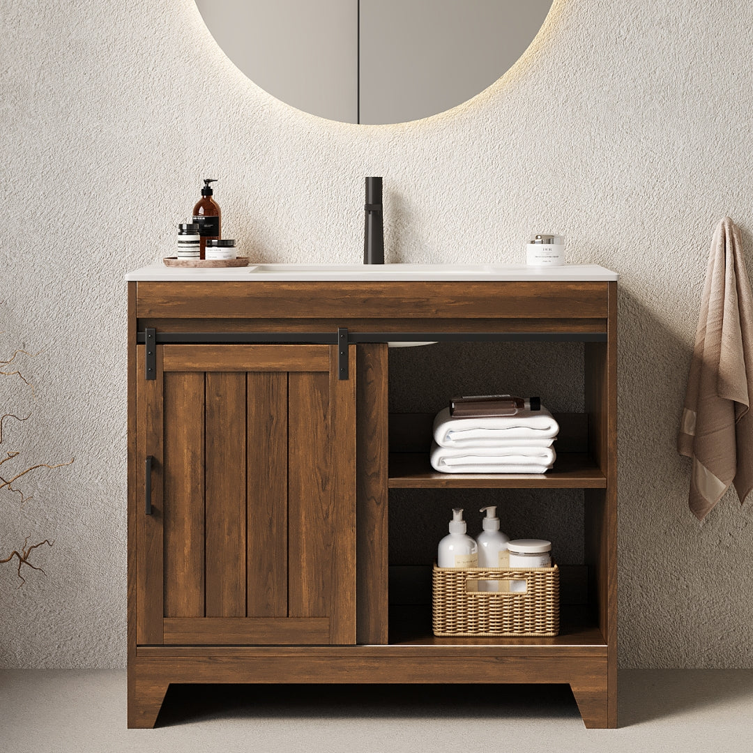 Rika 36" Freestanding Farmhouse Style Bathroom Storage Cabinet With Sliding Barn Door