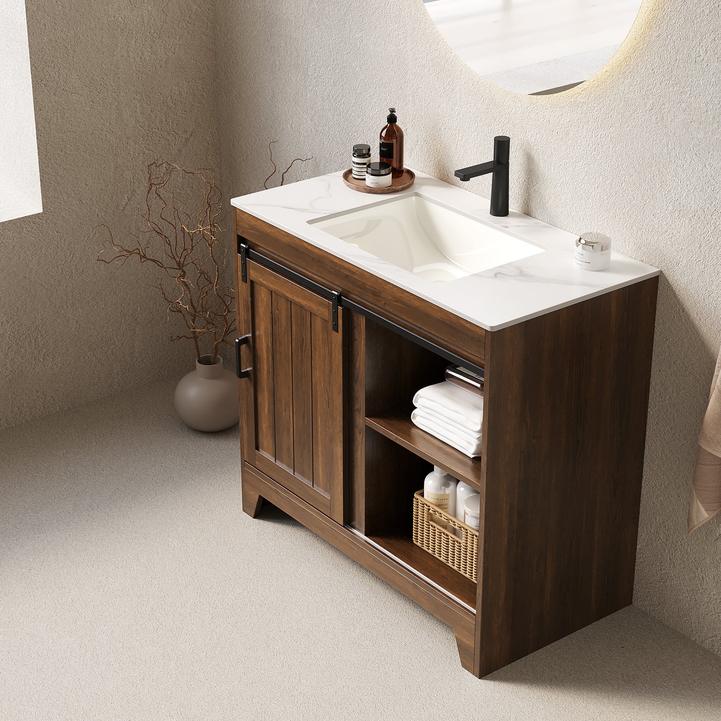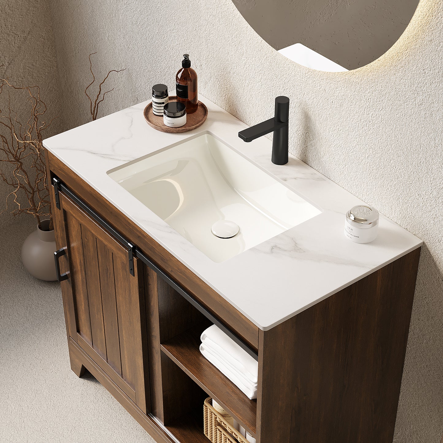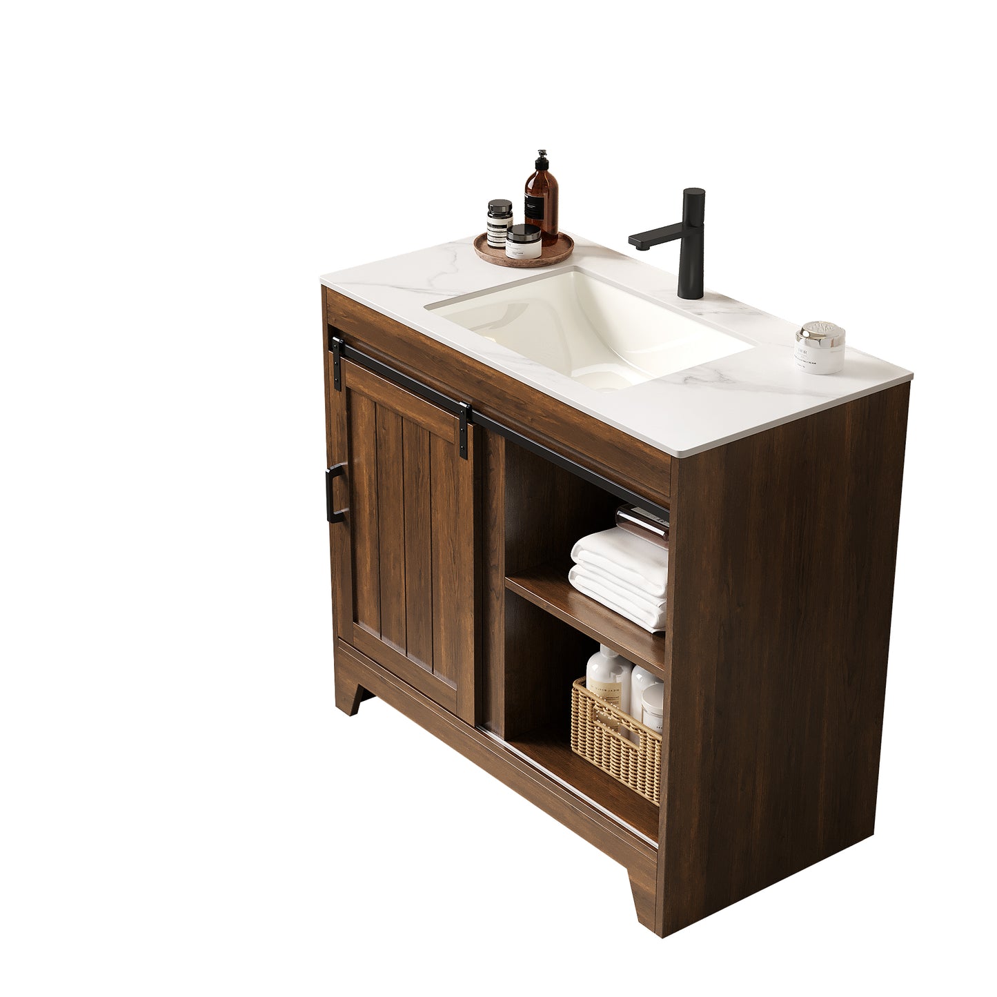 Rika 36" Freestanding Farmhouse Style Bathroom Storage Cabinet With Sliding Barn Door