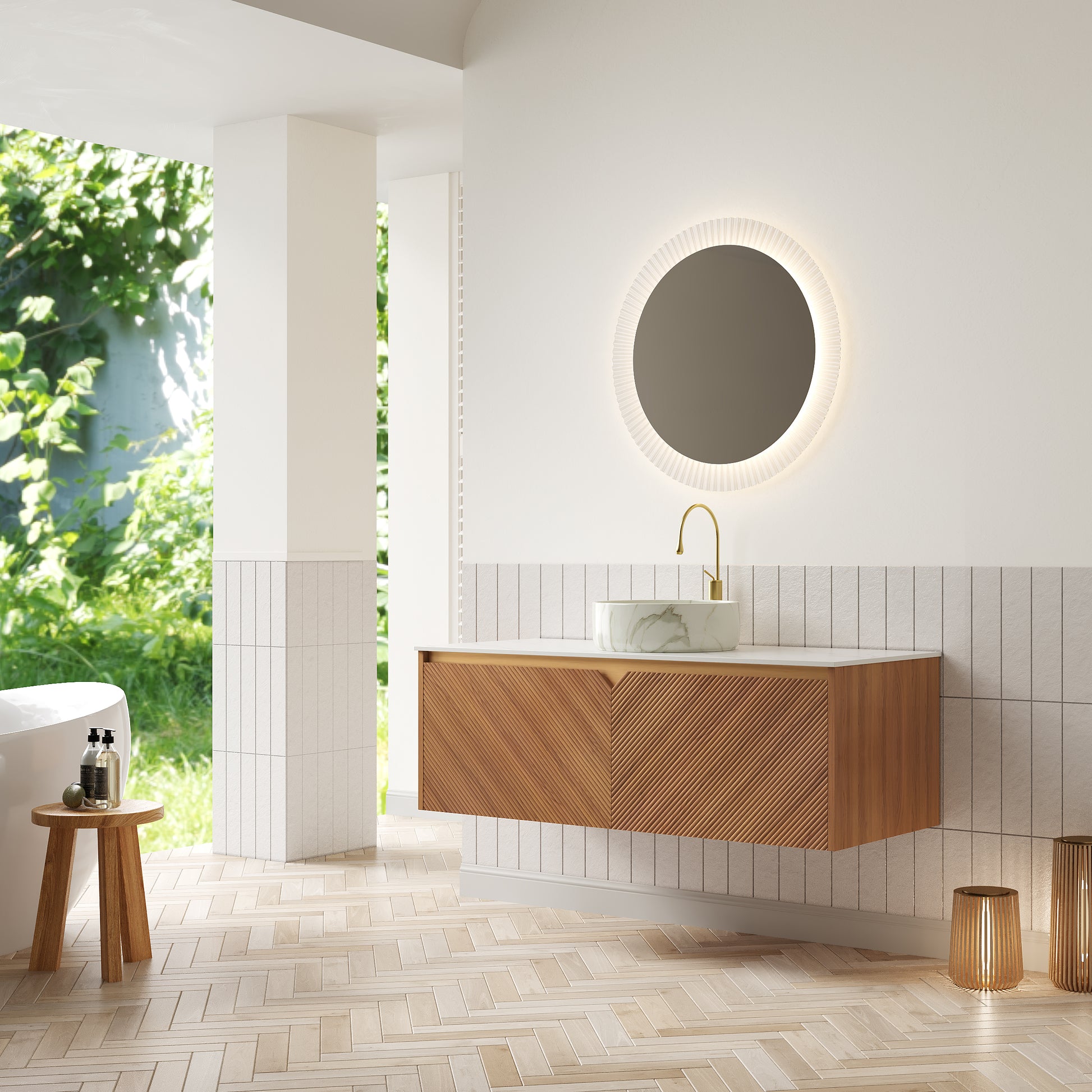 A range of high-quality vessel sinks—both ceramic and glass options, each boasting striking aesthetics—are available to choose from. Their streamlined design harmonizes seamlessly with the cabinet, while the premium materials ensure effortless daily
