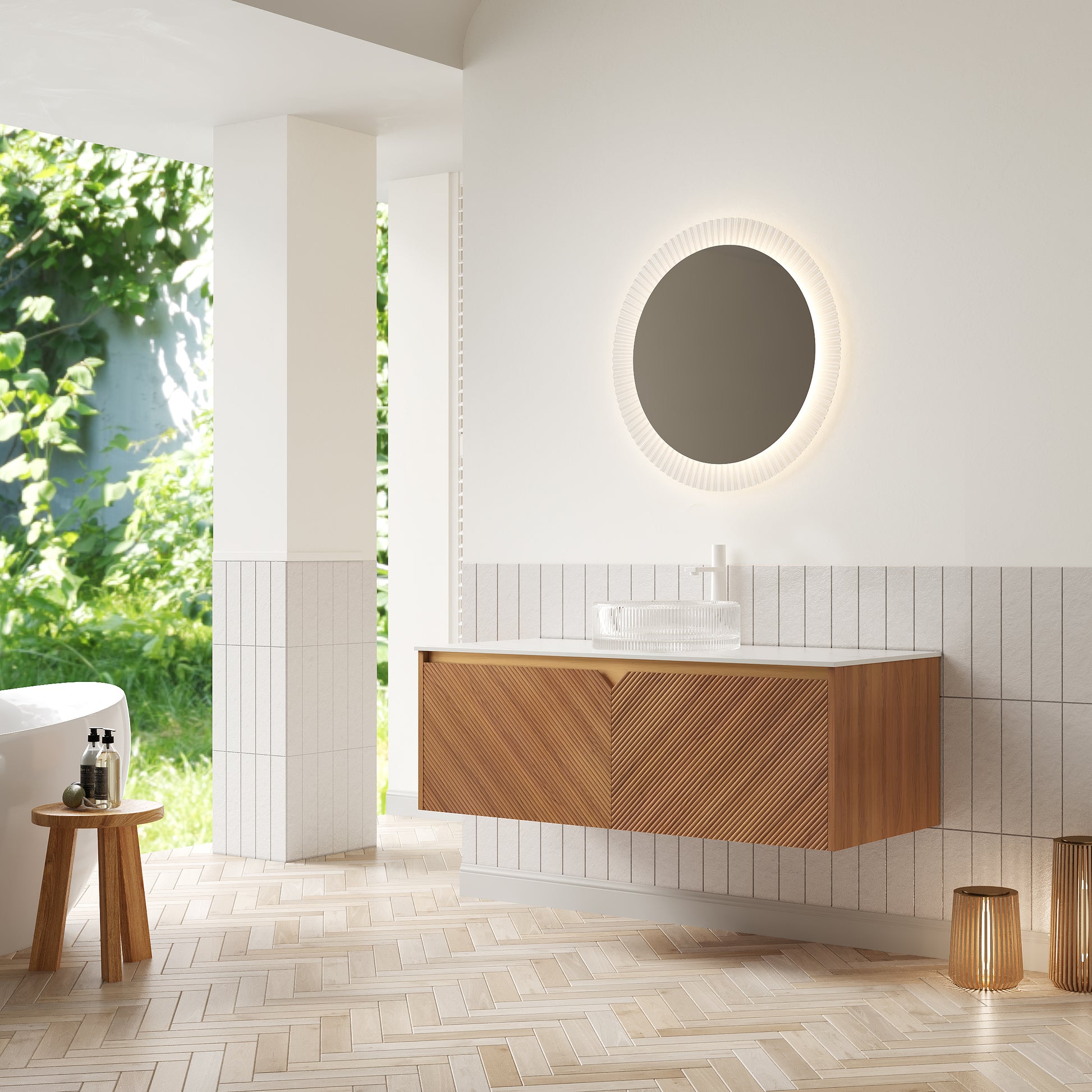 A range of high-quality vessel sinks—both ceramic and glass options, each boasting striking aesthetics—are available to choose from. Their streamlined design harmonizes seamlessly with the cabinet, while the premium materials ensure effortless daily maintenance.