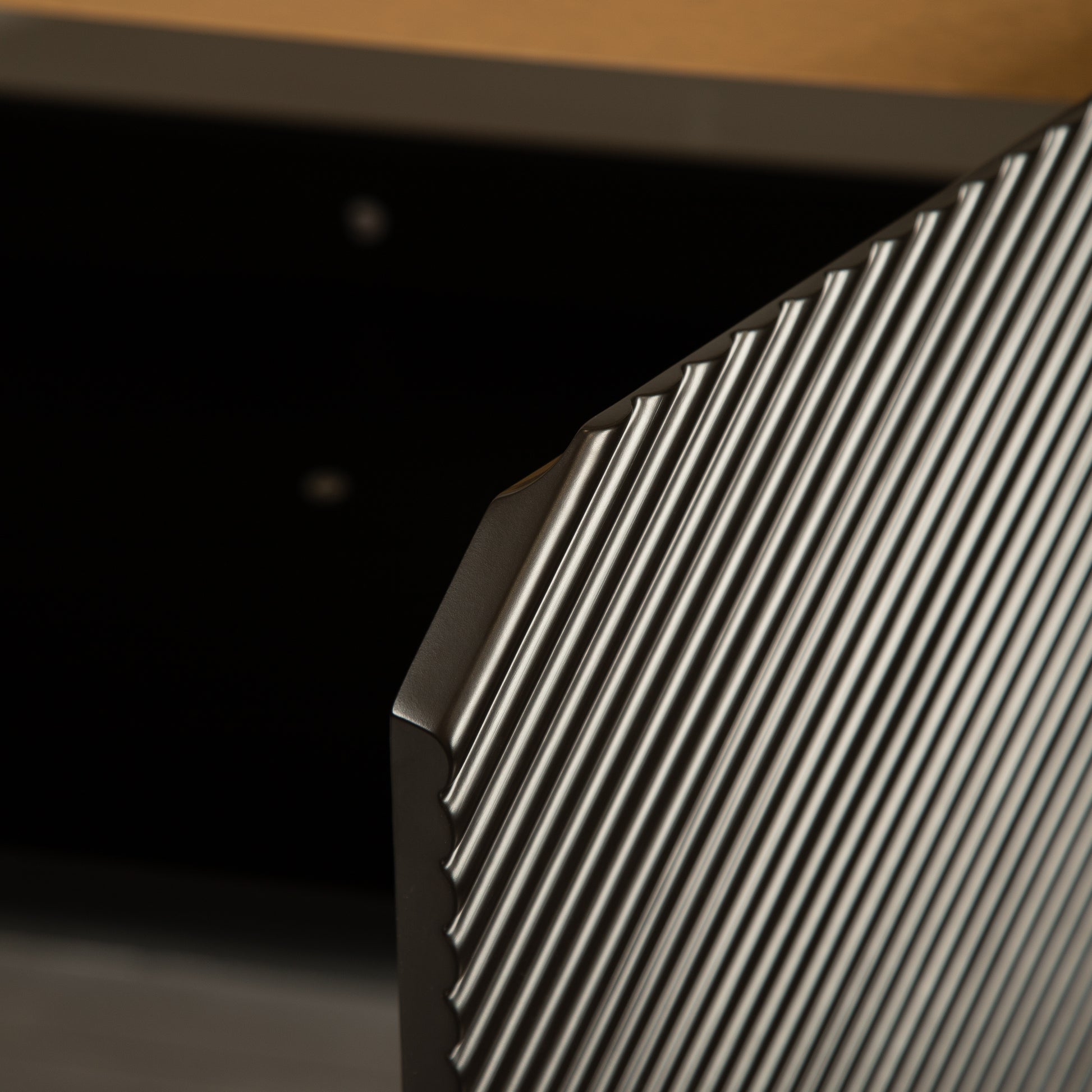 Through meticulous selection, we present solid wood cabinet doors featuring exquisitely carved, unique twill-symmetry patterns. Available in both rich black and selected oak wood finishes, these panels exude an undeniable sense of sophistication.