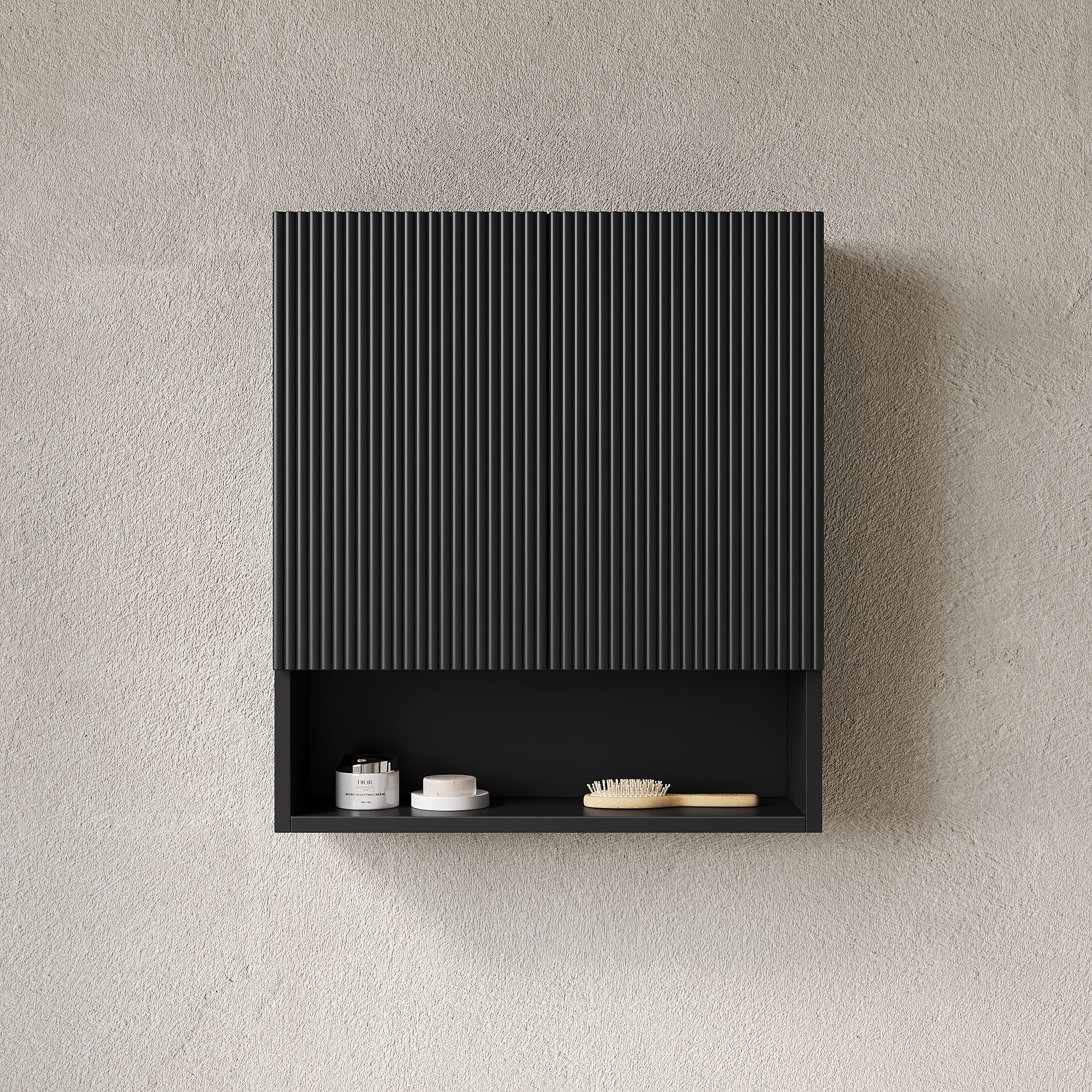TOBI 26" Wall-Mounted Striped Bathroom Cabinet, with Doors, Shelf and Open Storage Compartment Over The Toilet Storage Cabinet for Bathroom, Kitchen, Laundry Room, Black Color